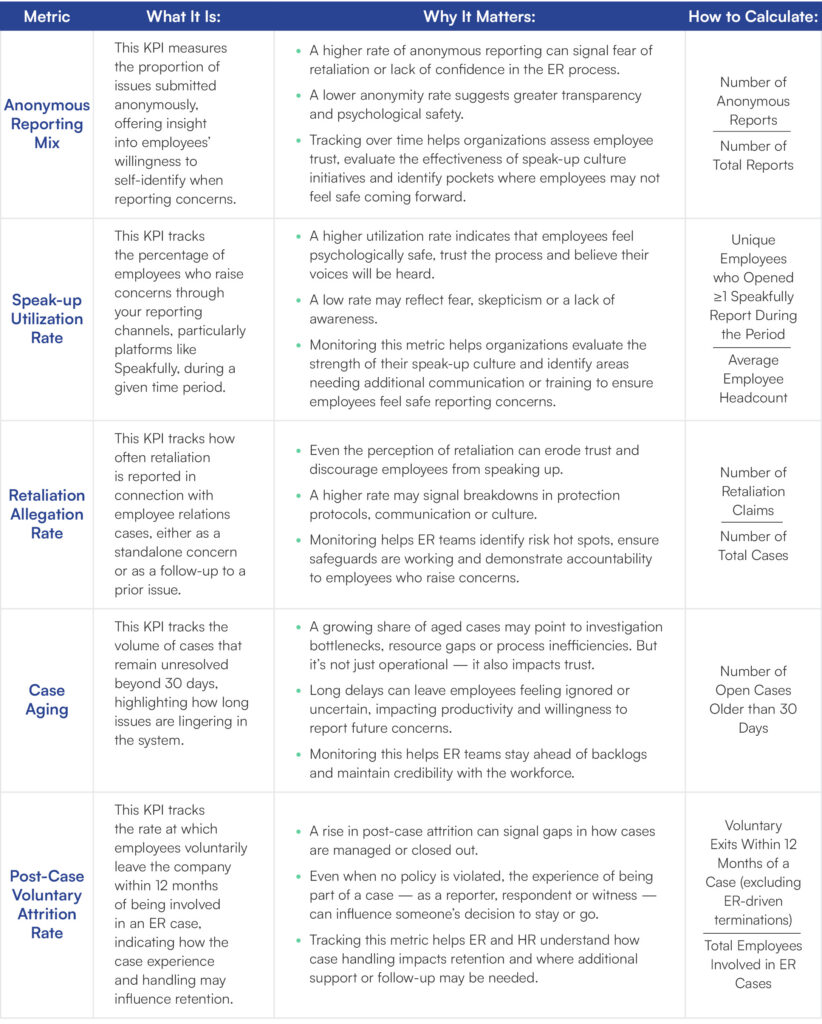 Employee relations sits at the center of some of your organization’s most critical risks: Cultural, reputational, legal and financial. Yet unlike other core business functions, ER has historically lacked standardized, executive-level metrics to demonstrate its impact. As a result, employee relations teams are often asked to explain complex, high-stakes work using lagging indicators or qualitative narratives in environments that demand data to drive decision-making.