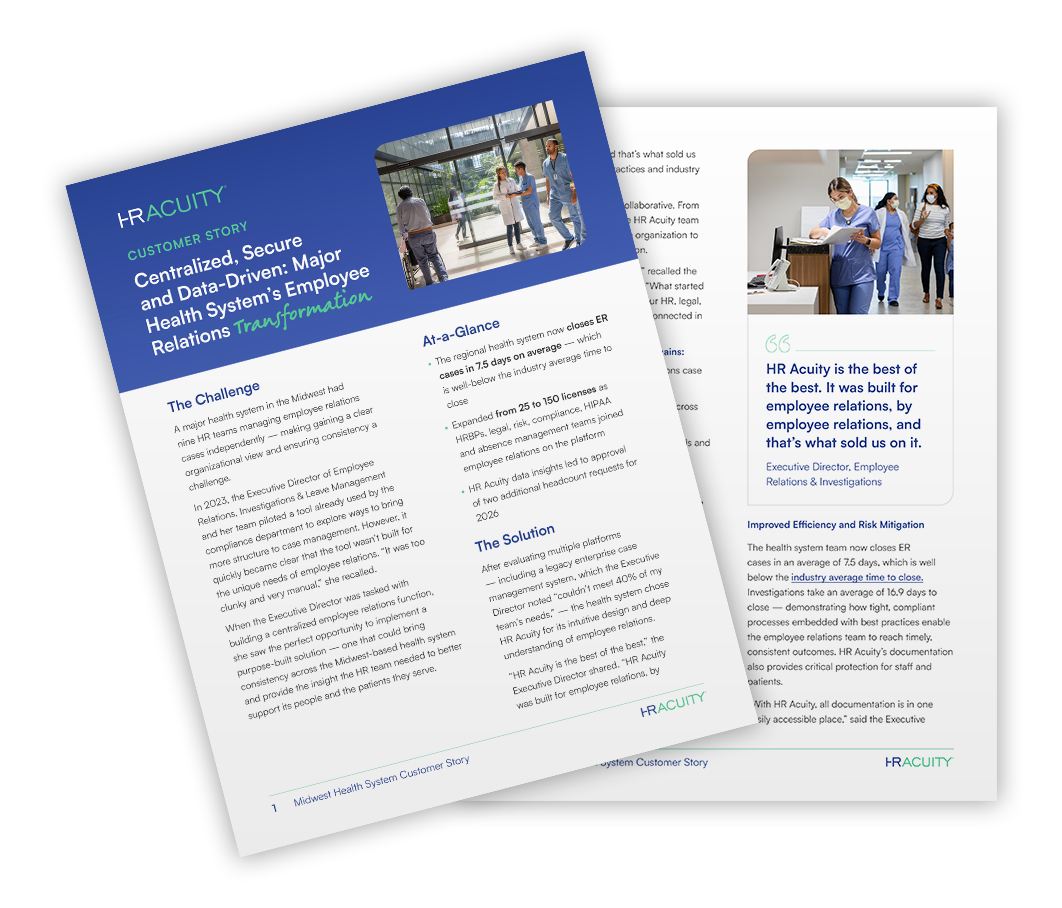 A major health system in the Midwest had nine HR teams managing employee relations cases independently — making gaining a clear organizational view and ensuring consistency a challenge.